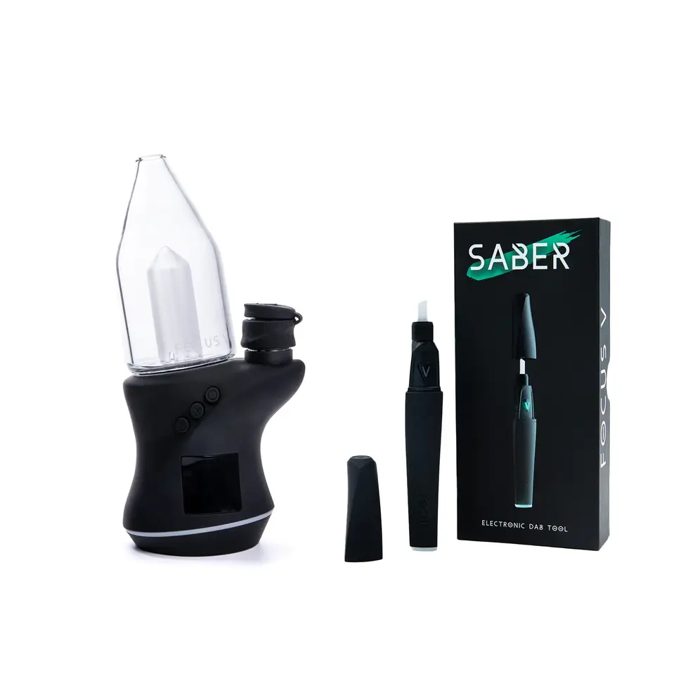 FOCUS V brings you the hottest accessory to hit your collection. SABER is an all new electronic dab tool that offers industry leading features and ergonomics. The high capacity battery charges quickly via USB-C and provides plenty of power for extended use. Equipped with 3 Power levels, an LED spotlight which allows you to see every little detail, and interchangeable tips which heat up quickly, SABER's intuitive one-button operation and multiple heating levels give you the control and freedom you expect from FOCUS V products.